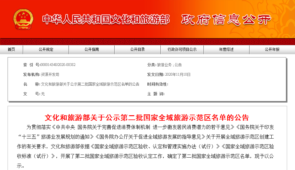 自全域旅游上升为国家战略以来,中央和地方积极推动全域旅游发展,疫情防控期间,全域旅游工作也没有停下前进的步伐,各地依旧持续开展,取得积极成效。已知首批71家国家全域旅游示范区名单已于2019年公布,其中华汉旅辅导的漠河、盘州等四地均成功上榜,11月18日,文化和旅游部发布《关于公示第二批国家全域旅游示范区名单的公告》,共有97家创建单位入选。(下附完整名单)