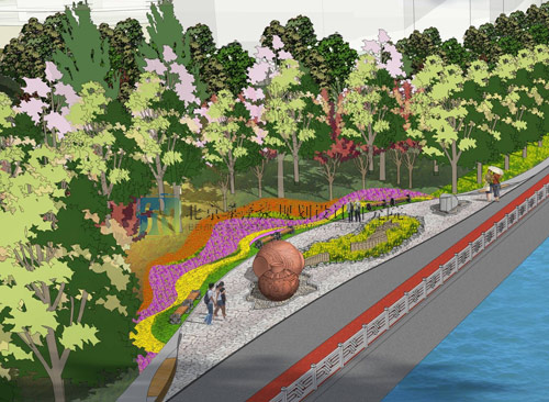 这三大主题元素来包装,在自然符号与文化符号交融的景观桥上,游客可在河道两侧游憩、穿梭、休闲、观景,