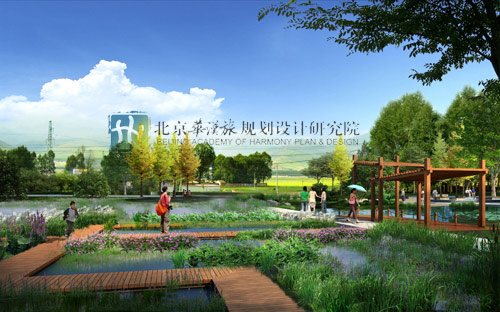 设计思路:依托窑河下游生态环境良好的草甸沼泽型湿地,对河道进行整理后,建成一处融合湿地观赏、休闲游憩、科普展示、湿地体验、综合服务等功能为主的湿地生态园。重现生态平衡、鸟语蛙鸣的自然湿地景观。